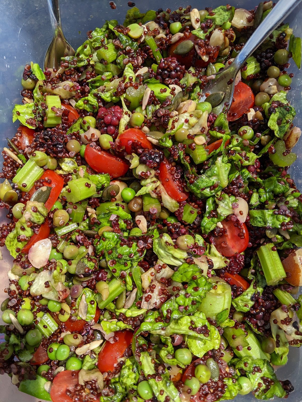 Friends of mine are surprised when I add grains to a salad. But why not? Why can’t a salad be a filling, satisfying meal in its own right?